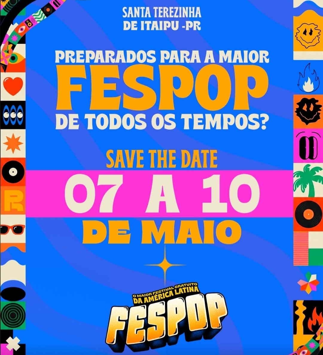 Fespop 2026 já tem programação oficial definida e será realizada entre os dias 7 e 10 de maio, no Parque de Exposições de Santa Terezinha de Itaipu, no Oeste do Paraná. O evento, considerado um dos maiores festivais populares gratuitos do Brasil, retorna ao calendário após não ter sido realizado em 2025.