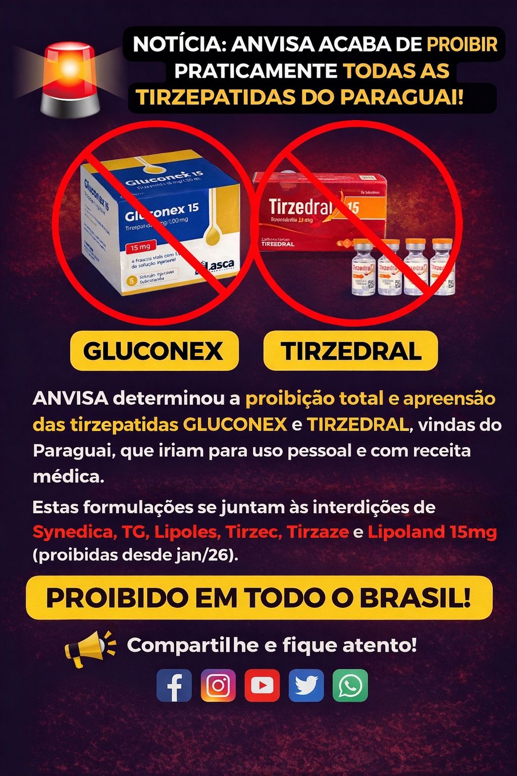 Uma decisão que já está dando o que falar, principalmente na região de fronteira. A ANVISA publicou nesta semana a Resolução-RE nº 1.519/2026 e bateu o martelo: estão proibidas no Brasil diversas tirzepatidas vindas do Paraguai.